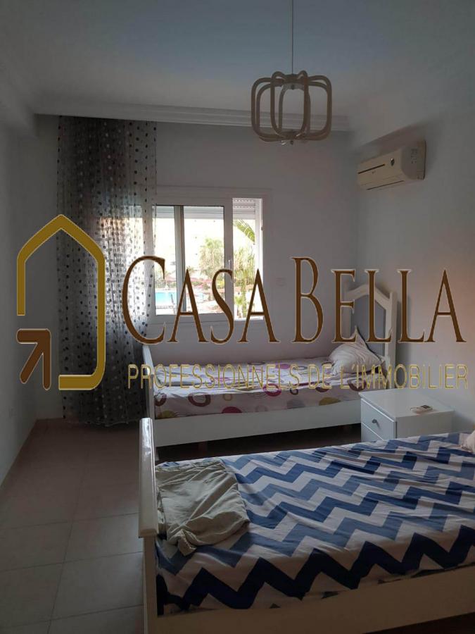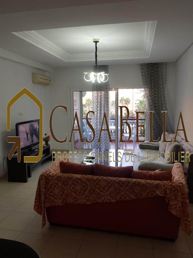 CASA BELLA IMMOBILIERE met à la location pour les vacances et les courtes durées, un magnifique appartement, Composé de 2 chambres à coucher, cuisine américaine, salle de bain, dressing, et un salon avec terrasse très agréable vue piscine, place parking sous-sol.