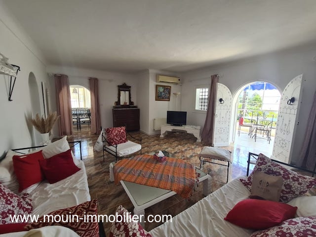 A louer pour des courtes durées un coquet étage de villa situé à la corniche d'Hammamet à 200m de la plage, dans une petite résidence calme et sécurisée.