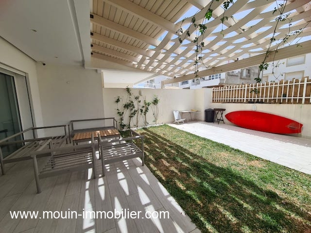 A louer pour des courtes durées, un spacieux et lumineux appartement situé au rez de chaussée d’une résidence pieds dans l’eau à Hammamet – La Corniche.