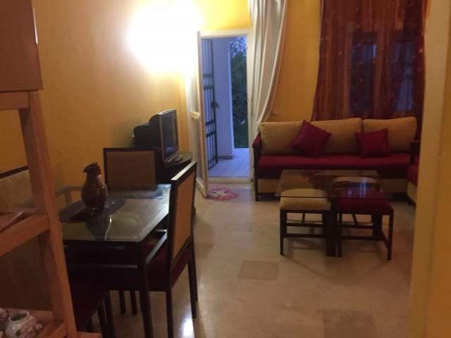 A louer pour les vacances un bel appartement richement meublé situé dans une résidence avec piscine à Hammamet Yasmine. IL se compose d'un salon donnant sur un jardin, une cuisine américaine, deux chambres à coucher dont une suite, une salle de bain et une salle d'eau.