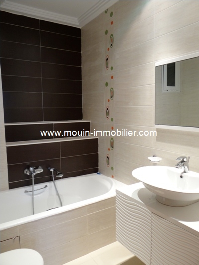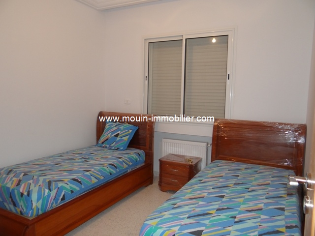 A louer pour des courtes durées un appartement neuf bien meublé situé dans une résidence gardée à L'AFH Mrezka. Il est composé d'un salon-salle à manger, une cuisine équipée, deux chambres à coucher et une salle de bain. L'appartement est équipé de chauffage central et de la climatisation.