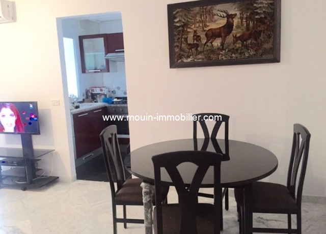 A louer pour les vacances un appartement bien meublé situé au 1er étage d'une résidence avec piscine et ascenseur à Mrezka. Il se compose d'un salon, une cuisine équipée, deux chambres à coucher et une salle de bain.
