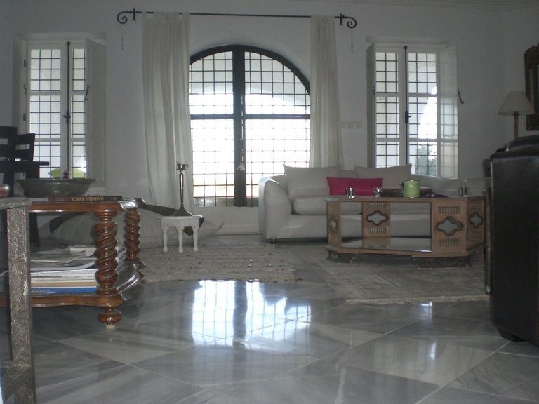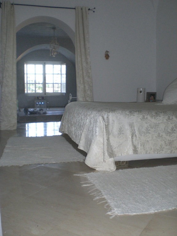 A louer pour des courtes durées, une somptueuse villa de plain-pied sise à Jbel El Monchar à 25 min de Hammamet. Elle offre un hall aménagé au centre d'un petit jardin d'hiver sous une coupole. Une cuisine équipée, une salle d'eau, un salon - salle à manger qui ouvre sur une grande terrasse, deux suites de chaque côté comprenant chacune un dressing et une salle de bain et un petit séjour. Le jardin entour la maison, vaste, gazonné et arboré, un parking pour 3 voitures et une superbe piscine.