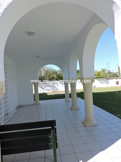 A louer pour les vacances une belle villa située dans un quartier résidentiel à Hammamet Sud-Jinan Hammamet. Elle se compose au rez-de-chaussée d'un salon-salle à manger donnant sur un beau jardin gazonné, une cuisine équipée, une chambre et une salle d'eau. L'étage se compose de trois chambres à coucher, une salle de bain et une petite salle d'eau. La villa est équipée de la climatisation et elle dispose d'un garage et une douche externe. Disponible en Juillet.