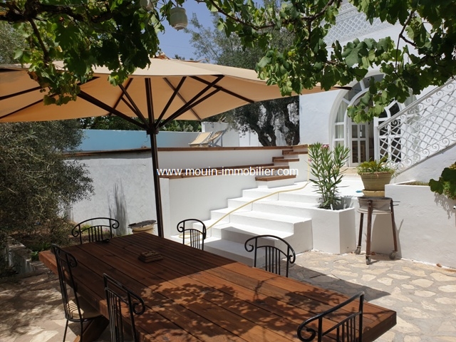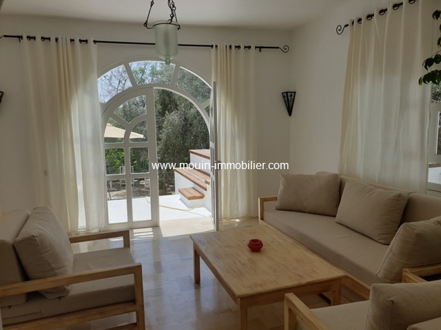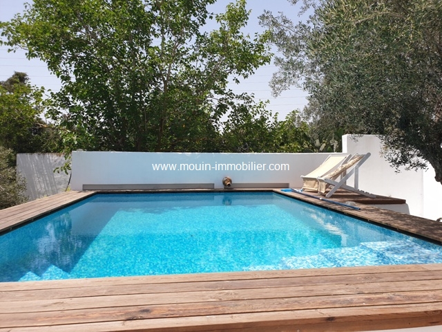 A louer pour les vacances une jolie villa avec piscine située dans un cadre verdoyant et calme à Hammamet- Birbouregba. Elle se compose d'un salon-salle à manger, une cuisine équipée, deux chambres à coucher, une salle de bain et une salle d'eau.