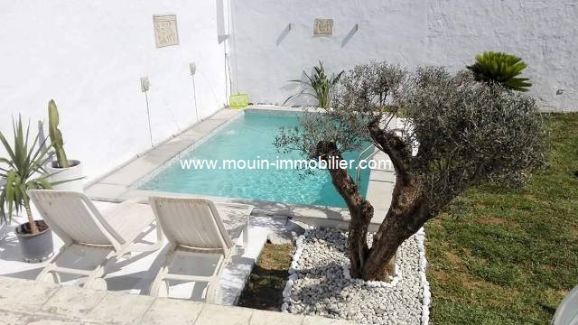 A louer pour les vacances, une coquette villa au style arabesque contemporain, située dans un quartier calme et résidentiel à environ 400m d’Hôtel Sindbed.