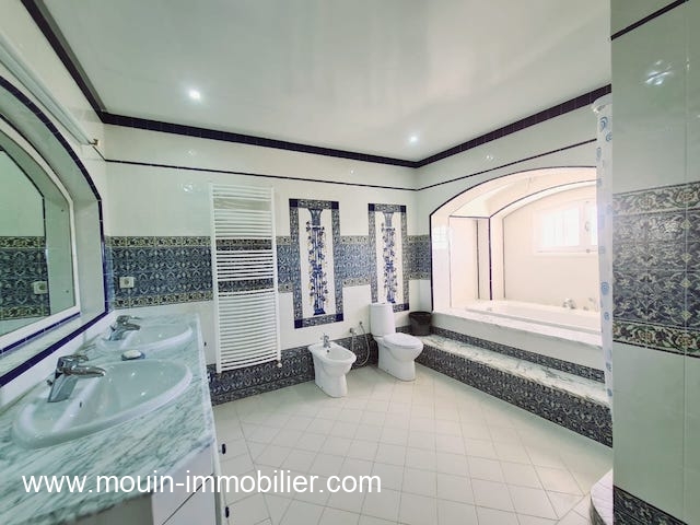 A louer pour des courtes durées une belle demeure située à Hammamet proche du théâtre, dans un quartier calme et bien accessible, à 700m environ de la plage et des commodités de vie.