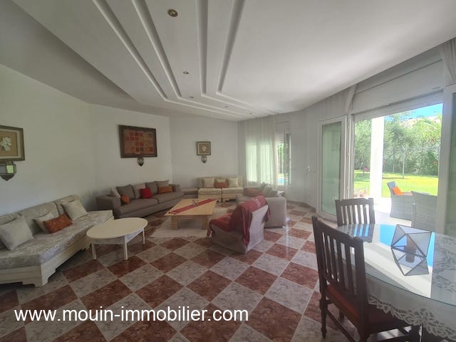 A louer pour des courtes durées une charmante villa avec piscine érigée sur deux niveaux et située à Hammamet Nord – zone Kharrouba dans un quartier résidentiel et proche des commerces.