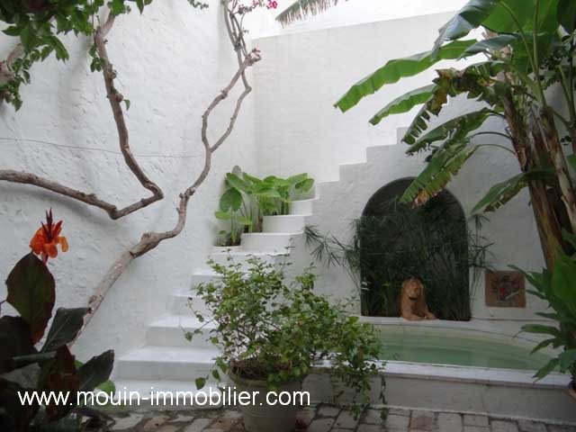 A louer pour des courtes durées une demeure au charme atypique située dans le coeur de la vieille Medina Hammamet, immergée dans un cadre exceptionnel créant une belle harmonie entre la continuité et profondeur du ciel et la mer, la blancheur des murs et des meubles et la fraicheur des plantes verdâtre.