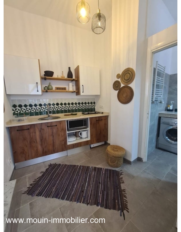 Bâtie au style arabesque traditionnel, il offre un hall d’entrée, une kitchenette bien équipée, une salle d’eau, un séjour avec un coin salle à manger et une chambre à coucher à l’étage.