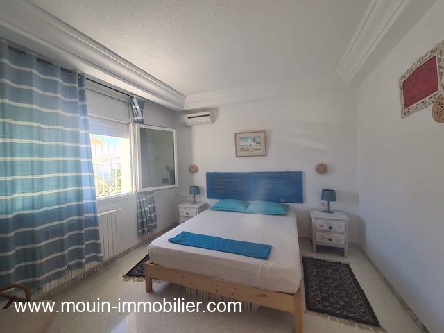 A louer pour des courtes durées une charmante villa avec piscine érigée sur deux niveaux et située à Hammamet Nord – Zone Kharrouba dans un quartier résidentiel et proche des commerces (à environ1,3km de la plage).