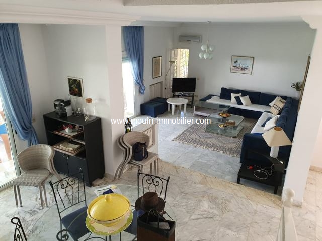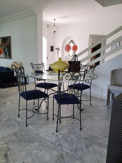 A louer pour des courtes durées, une belle demeure érigée sur deux niveaux, située à Hammamet Nord dans une belle résidence, calme et proche de la plage.