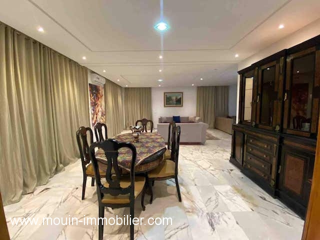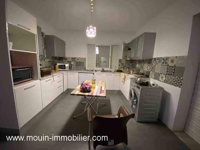 A louer pour des courtes durées une belle demeure bâtie sur un terrain qui s’étend sur 1300m2, idéalement placée à Hammamet Nord proche de La Résidence Jannet et d’Hôtel Nahrawes et à environ 300m de la plage.