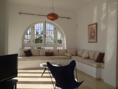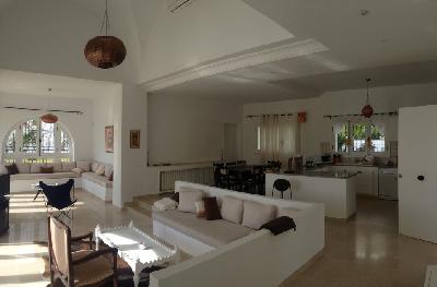 A louer à courte durée une magnifique villa avec vue de mer située à Hammamet - Zone Craxi. Elle est composée d'un spacieux salon, salle à manger, trois suites parentales, cuisine bien équipée et une salle d'eau. Cette villa est équipée de chauffage central et climatiseur. Elle dispose d'un grande piscine, un grand jardin et un parking. Prix: 4000DT / Semaine. 16000DT / Mois.