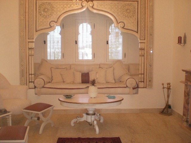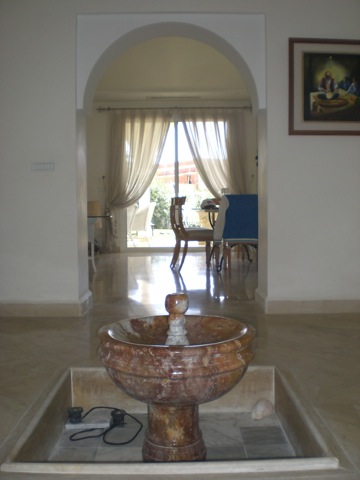 A louer pour les vacances d'été une luxueuse villa à Yasmine Hammamet. Erigée sur deux niveaux, elle offre au rdc une belle fontaine qui trône dans le hall et qui précède un salon d’hiver comprenant une cheminée, un 2éme salon, une salle à manger agencé et décoré avec goût et raffinement, des baies vitrées ouvrent sur une terrasse aménagée côtoyant la pelouse tondue et la piscine, une grande cuisine bien aménagée, une salle d’eau et une chambre de service. Quant à l’étage, il compte une suite parentale avec une grande terrasse donnant sur la piscine et deux suites aménagée de salle de bain et dressing.