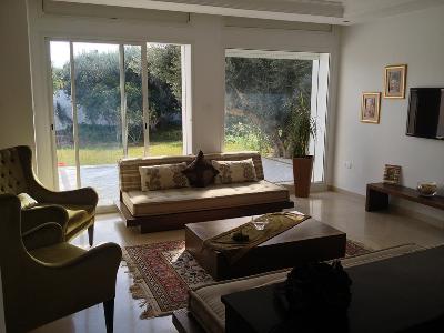 A louer à courte durée une charmante villa de très haut standing, érigée sur deux niveaux, à 5 min de Yasmine Hammamet et à 15 min de Hammamet ville.