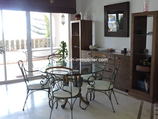 A louer pour les vacances une demeure d’exception, un produit rare à Hammamet située à la Marina-Yasmine Hammamet. Meublée avec gout, Cette villa érigée sur trois niveaux est composée au rez-de-chaussée d’un beau salon avec une cheminée, une salle à manger, le tout donne sur une magnifique terrasse avec une vue sur le canal, une grande cuisine équipée, une salle d’eau et une petite chambre.