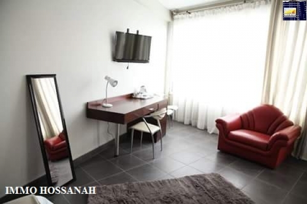 Studio meublé et équipé avec connexion Wifi, camera de surveillance,sécurisée 24h/24,porte blindée, piscine,quartier résidentiel,accessible en voiture,bien clôturé,comprenant :