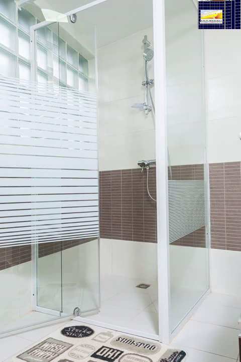 _Une salle d'eau avec cabine de douche,eau chaude et toilette