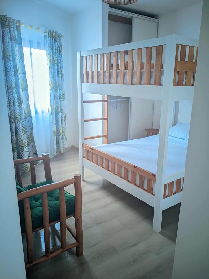 Appartement T3 meublé (1ere ou 2eme étage): 2 chambres, salon ouvert sur cuisine équipée et salle à manger, 1 salle de bain, 1 w.c, une véranda