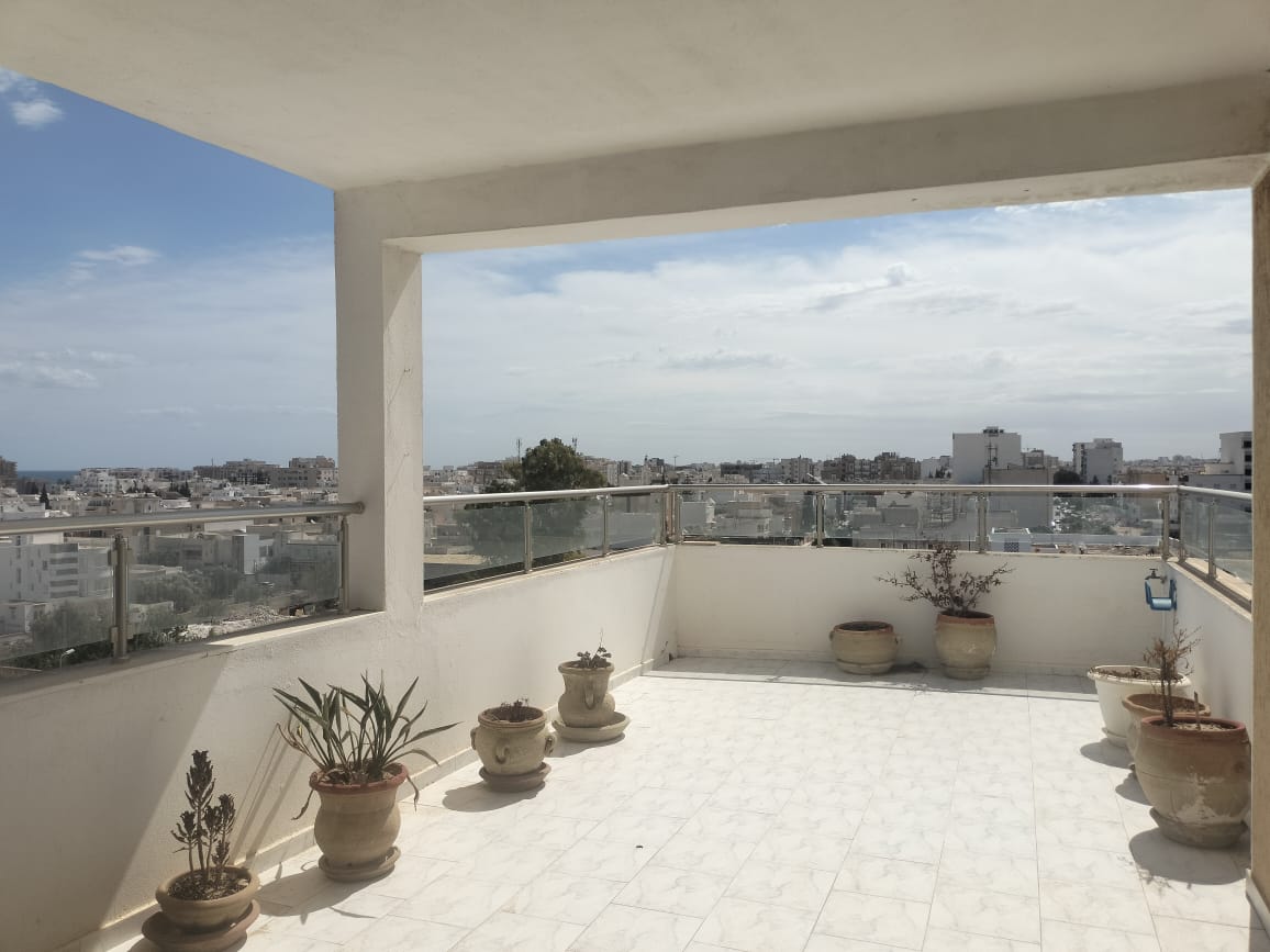 Situé au 6 ème étage ( ascenseur) , S+3 superficie habitable 120 m² appartement Meublé,Immeuble donnant sur la Gp1 à H-Sousse Proche ttes commodités . Appartement composé d'un salon, Salle à manger, 3 Chambres ,Salle de bain, Cuisine Agencée équipée, Terrasse Couverte de 60 m² , Chauffage Central et Climatisation .Prix demandé 1500 dt .Infos et Visite S'adresser à L'immobilière du Lac H-Sousse Au +216 73 370 942 où +216 99 904 113 et +216 23 713 406. |