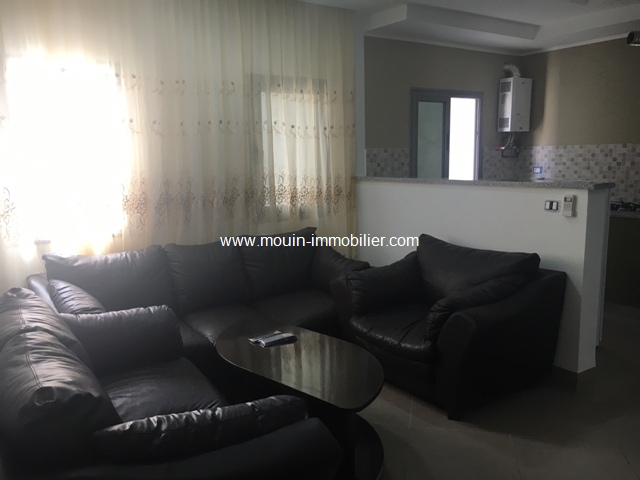A louer à l’année un appartement d’haut standing, situé au premier étage d’un immeuble neuf au centre ville d’Hammamet, proche de la plage et de toutes les commodités de vie. Il offre un salon avec une cuisine américaine, deux chambres à coucher dont une avec un balcon et une salle d’eau. Il est équipé de climatisation avec possibilité d’installation de chauffage centre. La consommation en eau, gaz et électricité est en forfait d’un supplément de 100 DT (jusqu’à l’obtention des compteurs individuels