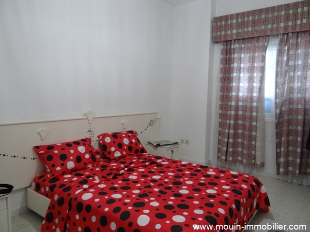 Proche de l’hôtel Sindbad, disponible à la location annuelle un appartement meublé situé au 2 éme étage d'une résidence. Il se compose d'un salon, coin à manger, une cuisine équipée, deux chambres à coucher et une salle de bain.
