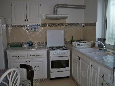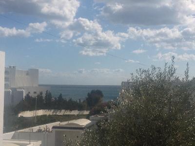 A louer sur la route touristique nord d'hammamet, Un appartement au première étage qui contient une kitchenette, un salon, une salle de bain et deux chambres a coucher, ainsi un terrasse pour profiter du soleil.Ainsi du chauffage central et de la climatisation.