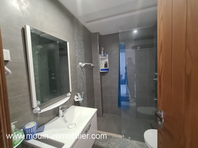 A louer à l’année (sauf durant le mois d’Aout), un bel appartement d’haut standing, situé au 1er étage d’une résidence gardée et sécurisée à Hammamet – Zone Théâtre dans un quartier calme et résidentiel.