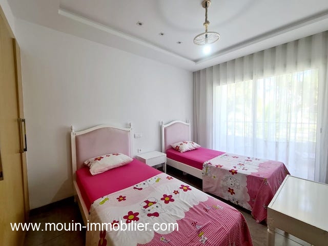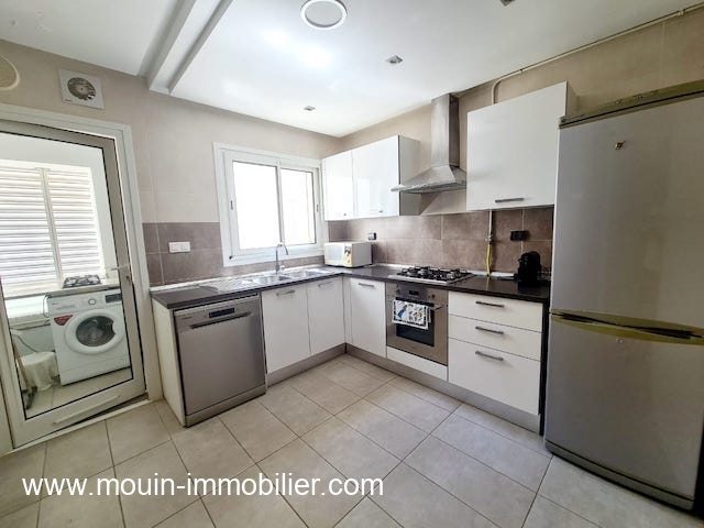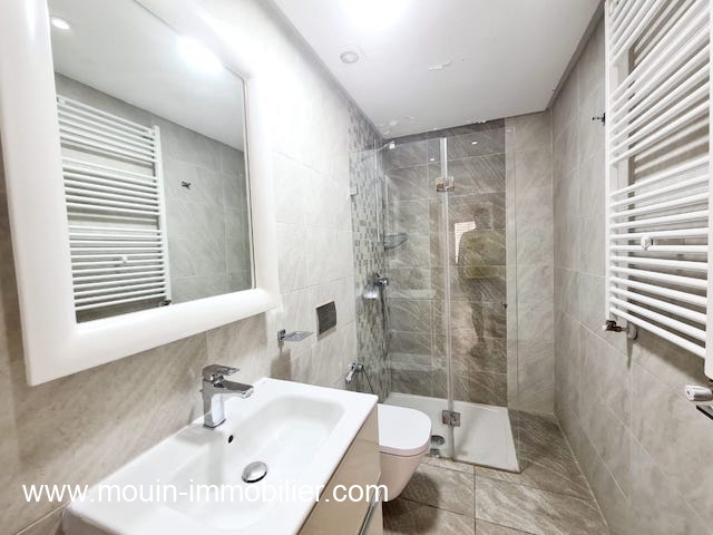 A louer à l'année un bel appartement de haut standing, situé au 2ème étage d’une luxueuse résidence à Hammamet, à environ 200m de la plage et des commodités de vie.