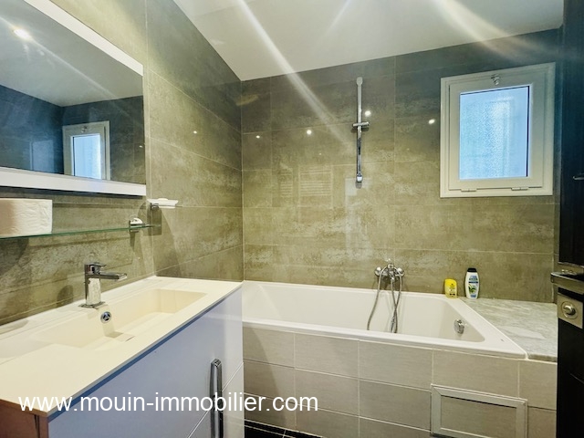 A louer à l’année un spacieux et lumineux appartement situé au rez de chaussée d’une belle résidence gardée et bien sécurisée à Hammamet Nord proche des Hotels Badira et Le Sultan.