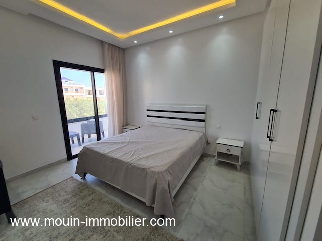 Il se trouve au 1er étage d’un petit immeuble de type R+2 à Hammamet Nord à 300m d’Hôtel Radisson Bleu, dans un quartier calme et résidentiel.