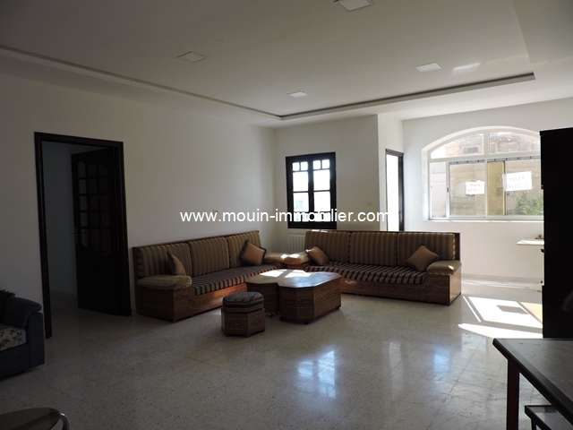 A louer à l'année un spacieux appartement situé dans la zone touristique à Mrezka proche Hotel Khayem. Il se compose d'un grand salon, salle à manger, une cuisine équipée, trois chambres à coucher, une salle de bain et deux salles d'eau.