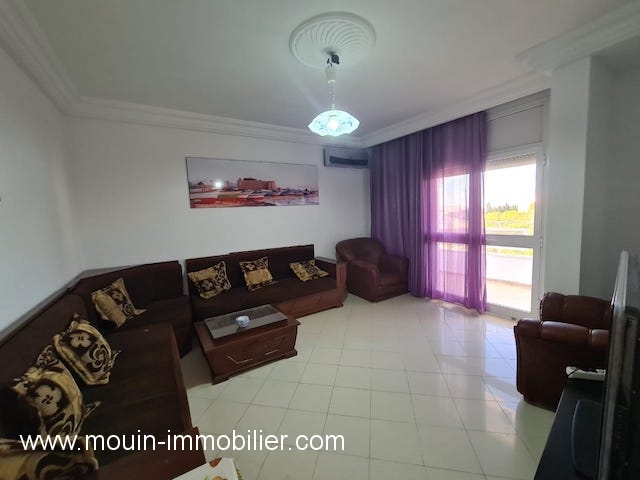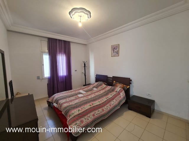 A louer à l’année un spacieux et lumineux appartement situé au 3éme et dernier étage d’un petit immeuble à Hammamet Nord proche Hôtel Sultan.