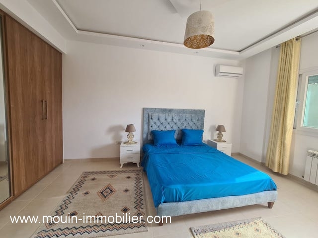 A louer à l’année un bel étage de villa s’haut standing, meublé et décoré avec un gout raffiné. Situé dans un quartier calme et serein à Hammamet Nord proche du carrefour Market.