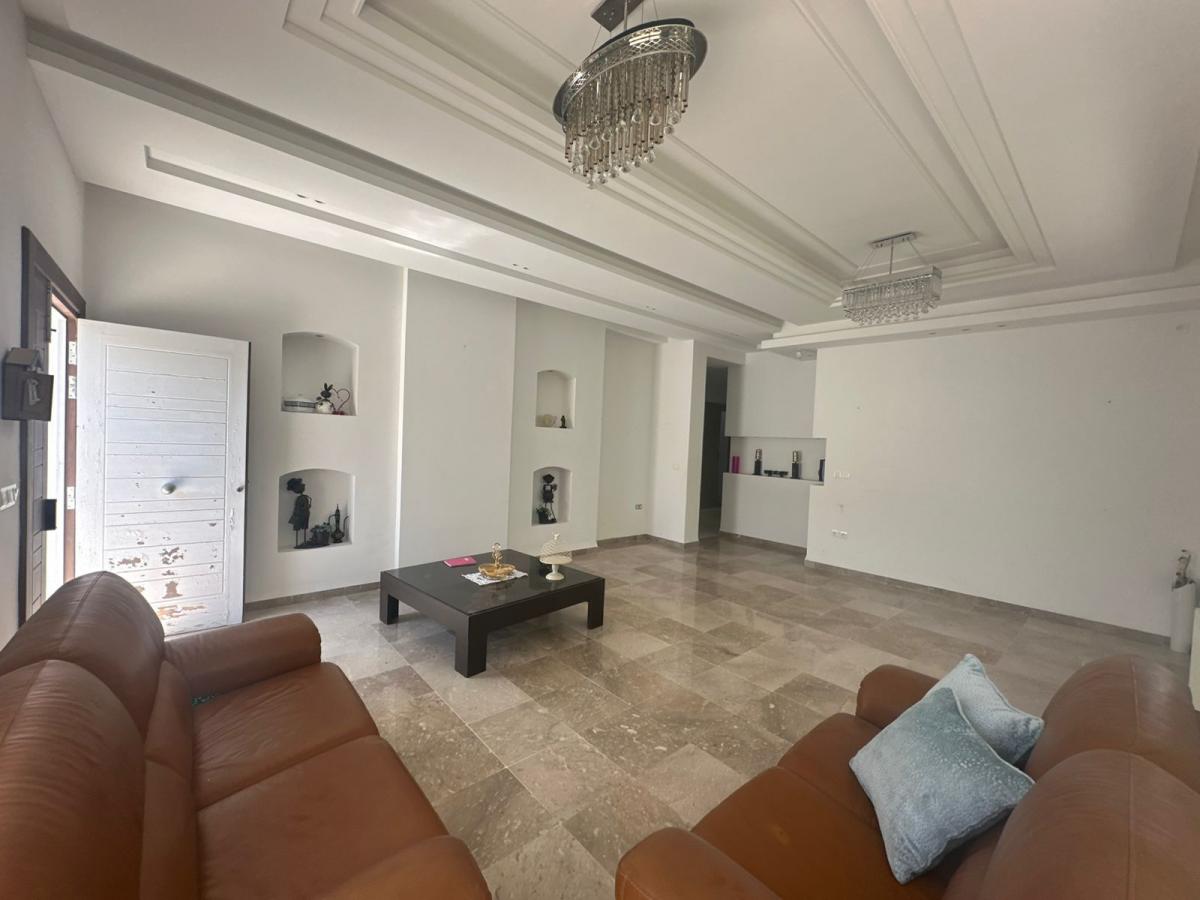 A louer Rez de chaussé de Villa Haut Standing Meublé à Sousse Bouhacina ,Proche école Française dans Quartier Résidentiel, Une entrée principale ouvrant sur un Vaste Salon donnant sur un Coin jardin, la partie jour est dotée d’un Salon embelli par une Cheminée, Salle à manger, un Bureau, Salle de douche, Cuisine agencée et équipée avec une Terrasse Spacieuse. La partie nuit Comprend deux suites spacieuses avec salles de bains et dressings. Le rez de chaussé est équipé du Chauffage Centrale et Climatisations par Split, un Coin jardin, une entrée indépendante avec deux places de voitures.