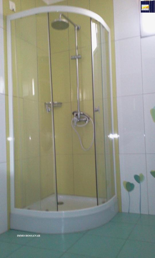 _Une salle d'eau avec cabine de douche, eau chaude et toilette