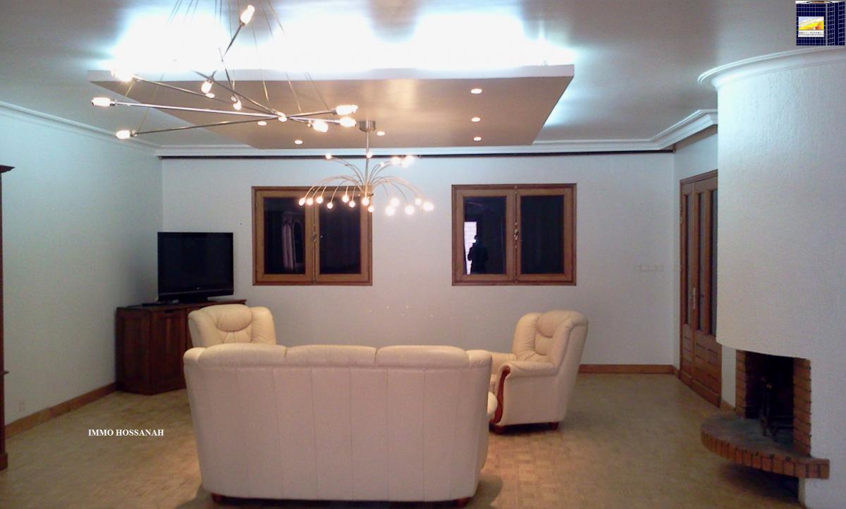 _Un grand living de 80 m² avec cheminé salon complet, TV encrant plat, table à manger, coin bureau
