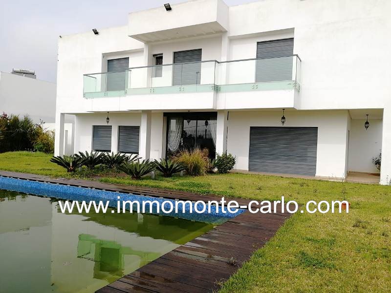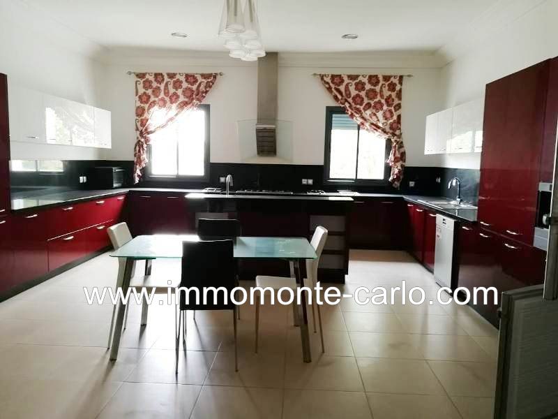 À louer villa meublée à Rabat au quartier Souissi. Dans un environnement privilégié, villa bien meublée avec piscine privée jardin chauffage et climatisations. Idéalement située dans un quartier résidentiel, bénéficiant de prestations haut de gamme, villa lumineuse beaux volumes aux grandes baies vitrées sans aucune vis à vis et superbe vue sur le jardin, piscine. Mobiliers contemporains et de grandes qualités, située sur une rue tranquille Villa construite sur 2 niveaux, composée