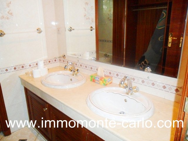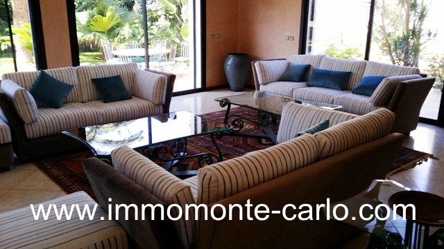 Villa moderne meublée avec piscine dans un jardin clôturé, paysager très bien située à Hay Riad Rabat. Superbe vue sur la piscine. Terrasses autour de la piscine avec mobilier en teck, barbecue, construite sur 3 niveaux et composée de: Rez de chaussée spacieux et lumineux avec terrasse donnant sur la piscine et le jardin, comprenant triple salons, coin cheminée, séjour, salle d’eau des invités, grande cuisine bien équipée, buanderie, cour. Étage: suite parental avec dressing, salle de bain et grande terrasse, 3 chambres à coucher chacune avec sa salle de bain et dressing et terrasse privée, Sous-sol : salon, douche, WC, chambre, débarras, buanderie, logement de personnel…. Pour plus d’informations ou visite n’hésitez pas de contacter notre agence immobilière Immo Monte-Carlo au N° de tél: +212661464037/ +212661212547ou Tél/Fax: +212537755043 ou par E-mail : immomontecarlo@gmail.com ou visitez notre site www.immomonte-carlo.com ou rendez-vous au 15. Av, Al Abtal N°4, Agdal RABAT MAROC. |