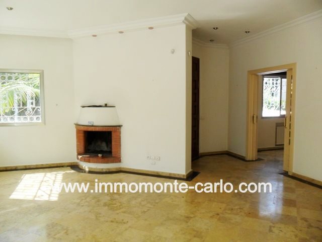 Villa à louer à Hay Riad à Rabat avec chauffage central, proche de toutes les commodités dans une rue calme rideaux électriques, énergie solaire, hammam beldi, sécurité.