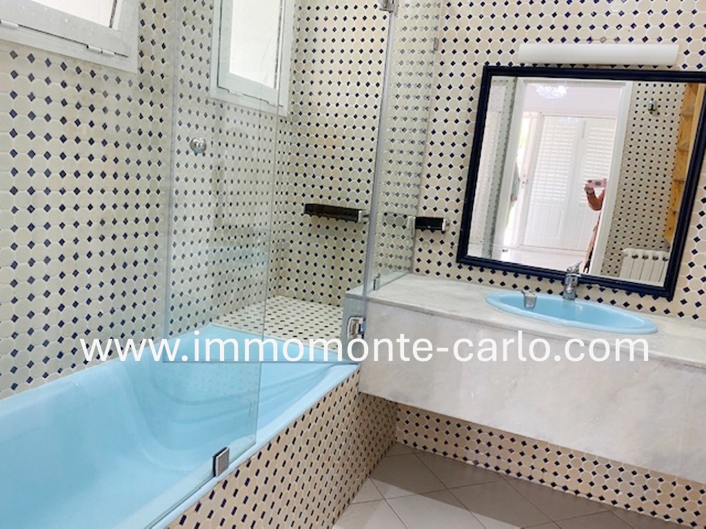 Elle se compose d’une grande réception comprenant un double salon lumineux agrémenté d’une cheminée, avec accès direct à une grande terrasse donnant sur un joli jardin paysagé, équipé d’un système d’arrosage automatique alimenté par un puits.