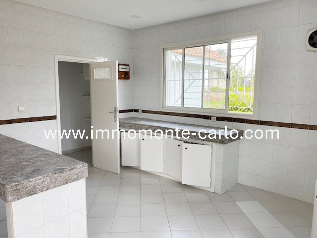 La villa dispose aussi d’une cuisine aménagée, d’un chauffage central, d’un grand garage avec ouverture automatique, ainsi que d’un logement pour le personnel.