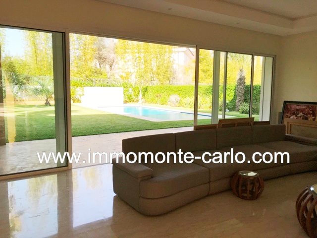 Villa neuve moderne haut standing, avec piscine chauffage central climatisation réversible, composée d’une belle réception 2salons avec cheminée donnant sur une belle terrasse sur une piscine et un jardin, salle d’eau, bureau cuisine neuve et moderne équipée, 4 chambres chacun avec sa salle de bain et placards dont un master room avec dressing et salle de bain, des terrasses, beau jardin, logement du personnel, débarras , buanderie, garage automatique, logement de gardien,…