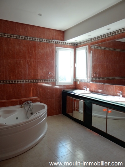 A louer à l’année, une villa de prestige située à Gammart La Marsa dans un quartier calme et sécurisé. Elle est érigée sur deux niveaux et elle offre un spacieux salon (qui fait 280m2), une cuisine bien aménagée et une salle d’eau au rez de chaussée et quatre suites à l’étage. La villa dispose d’un arrêt de jardin qui compte une cuisine, une salle d’eau, trois pièces ainsi qu’un garage. La propriété est construite sur un terrain qui s’étant sur 1 500m2 et qui compte une magnifique piscine et un jardin gazonné