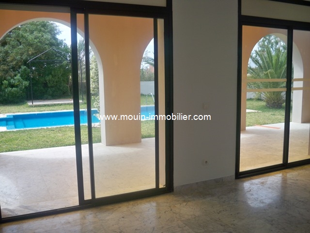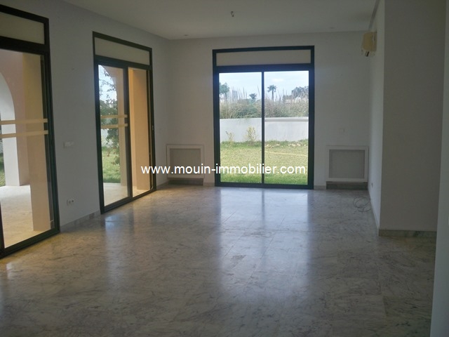 A louer à l'année une belle villa située dans une résidence sécurisée à Gammarth. Erigée sur deux niveaux, elle est composée au rez-de-chaussée d'un salon-salle à manger donnant sur le jardin et la piscine, une cuisine aménagée, une salle d'eau et une suite parentale.
