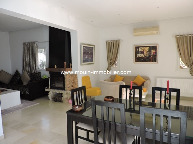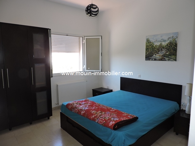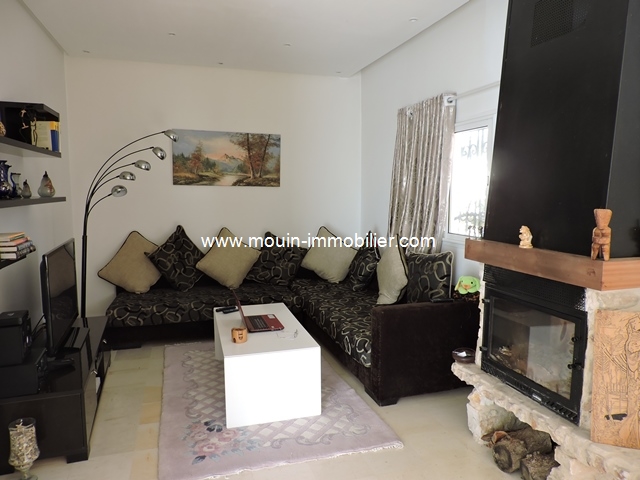 A louer à l’année une jolie villa entièrement meublée située dans un quarter ré-sidentiel et proche commerces et plage à Hammamet. Erigée sur deux niveaux, elle se compose au rez-de-chaussée d’un salon-salle à manger équipée d’une cheminée, une cuisine moderne, une salle d’eau et une chambre.