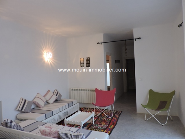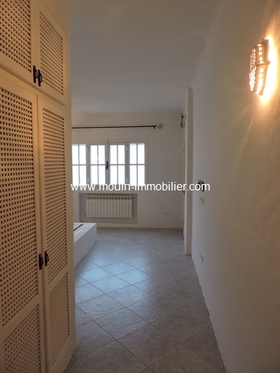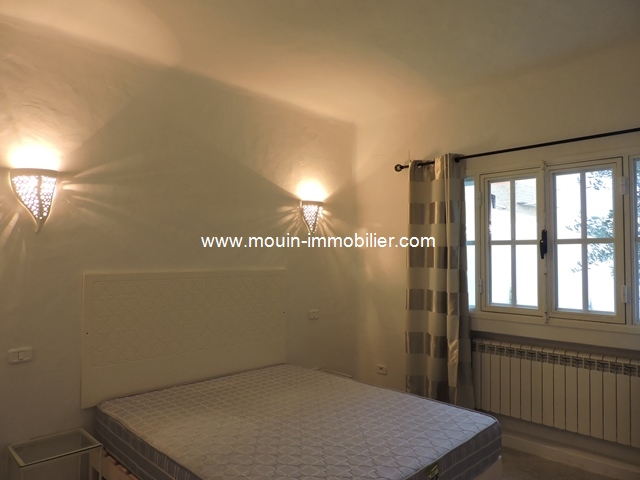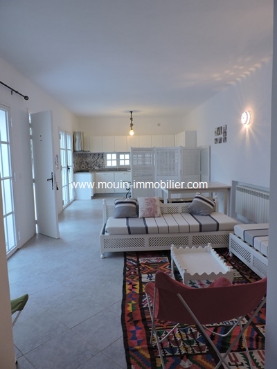 A louer à l'année une villa de plain-pied d’une belle architecture arabesque modernisée, située à Hammamet face à Hôtel Ribat dans un quartier calme et résidentiel. Elle offre une grande pièce composée d’un salon-salle à manger, une cuisine américaine installée, une chambre à coucher, une suite parentale et une salle d’eau. La propriété est équipée de chauffage central et elle dispose d’un beau jardin clôturé et d’un studio indépendant.