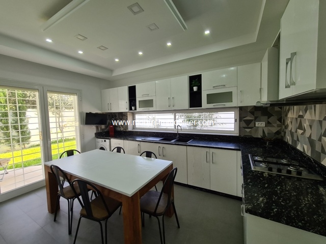 A louer à l’année une villa neuve bâtie sur un terrain de 350m, doté d’une architecture moderne avec des matériaux de qualité, cette jolie villa est située dans un quartier calme et résidentiel à Hammamet. Elle compte au rez-de-chaussée un hall d’entrée, un salon-salle à manger, une cuisine équipée et une salle d’eau.