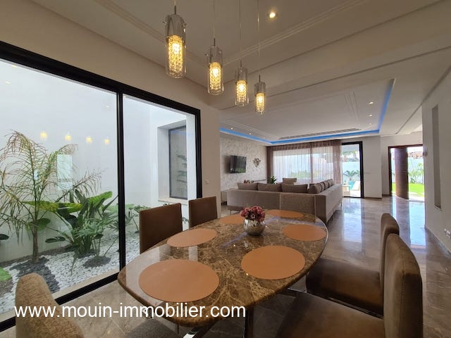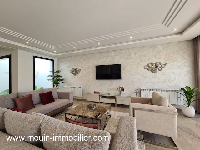 A louer à l’année une belle demeure récemment construite ayant une belle architecture moderne, située à Hammamet – Zone Théâtre dans un quartier calme et résidentiel. Richement meublé et bien décoré avec un gout raffiné.